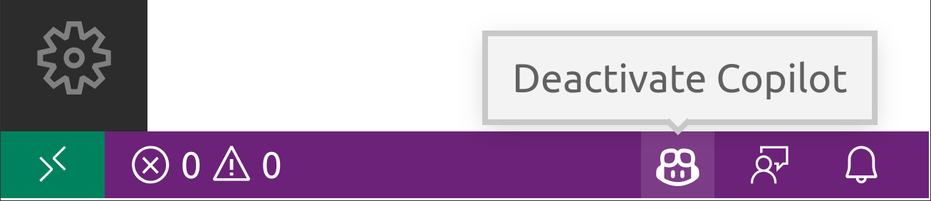 Иногда предложения второго пилота GitHub могут вам помешать. Если это так, то вы можете отключить их глобально или для определенного языка программирования, нажав на значок расширения в правом нижнем углу окна редактора: