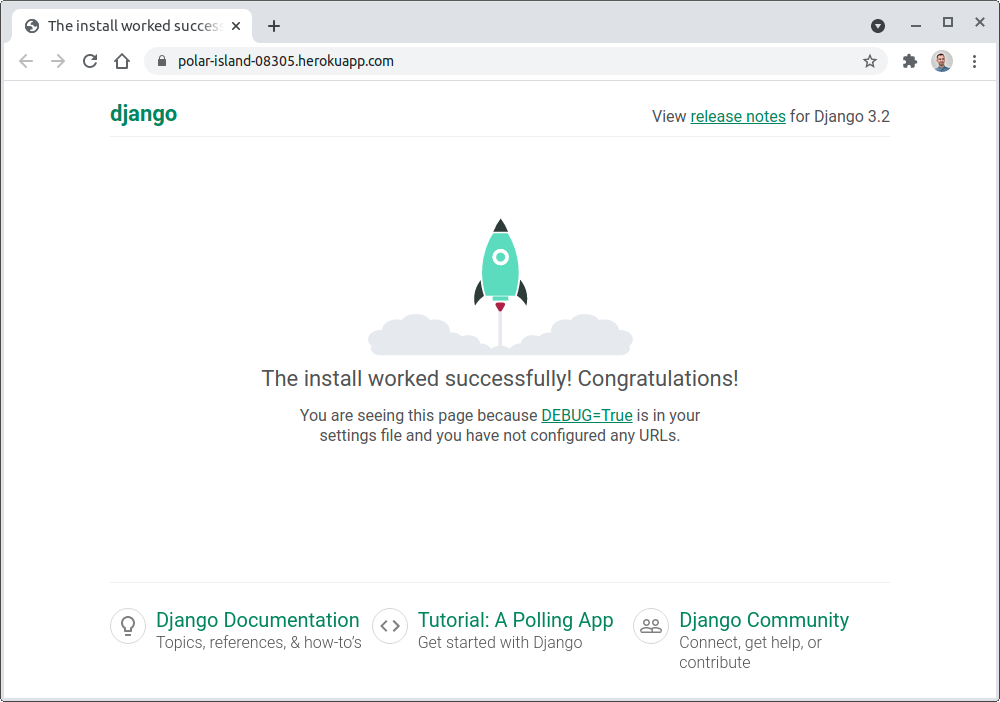 ALLOWED_HOSTSв настройках вашего проекта. Помимо этого, Django buildpack для Python запускает для вас командуcollectstatic, для которой требуется указать параметрSTATIC_ROOT. Независимо от того, используете ли вы Heroku или нет, при развертывании проекта Django необходимо изменить еще несколько параметров конфигурации, но на данном этапе они не обязательны.Вместо того, чтобы настраивать Django вручную, вы можете воспользоваться ярлыком и установить удобный пакет