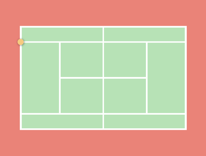 Теперь предположим, что его соперник нанес ответный удар дроп—шотом, который отправил бы мяч в дальний угол с небольшим импульсом движения вперед — в противоположный угол, где другая боковая линия пересекается с сеткой: