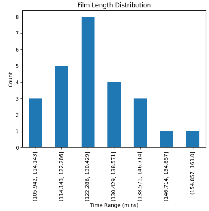 ...: length = data["film_length"].value_counts(bins=7).sort_index()