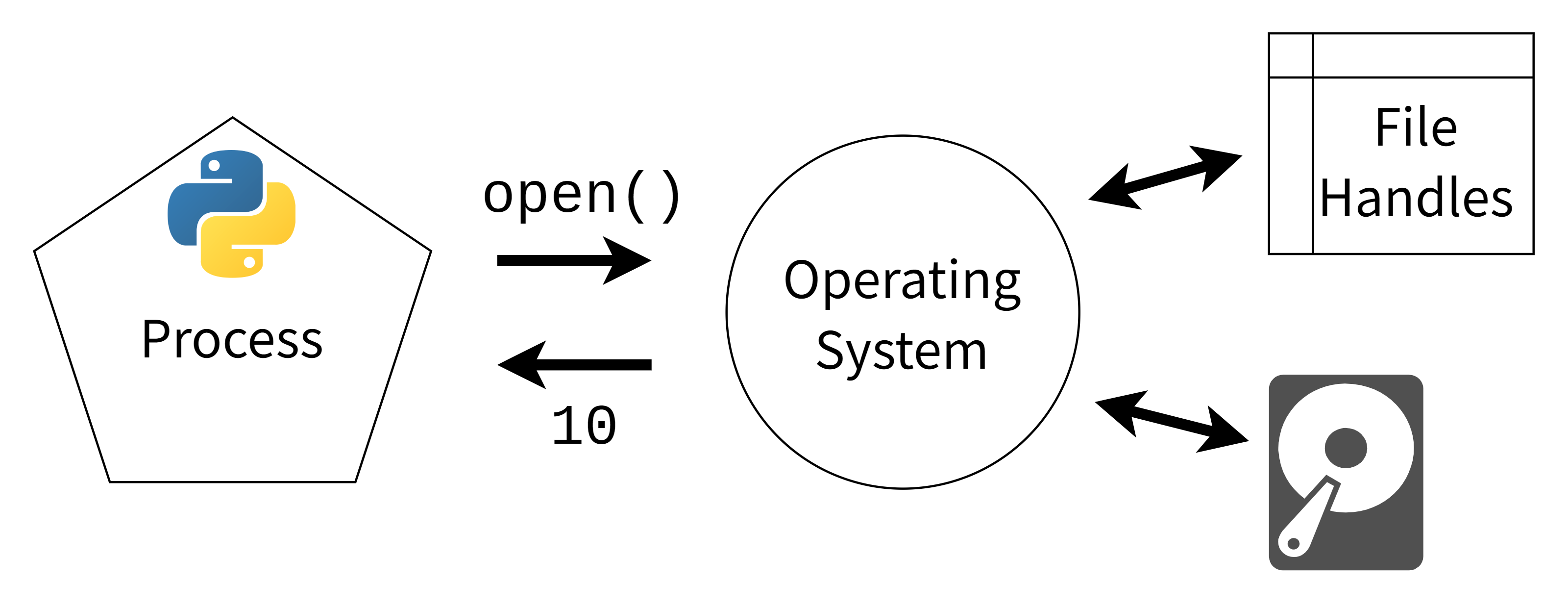 питон делегатов файловых операций на Операционная система. Операционная система является посредником между процессами,, такими как Python, и всеми системными ресурсами, такими как жесткий диск, оперативная память и процессорное время.