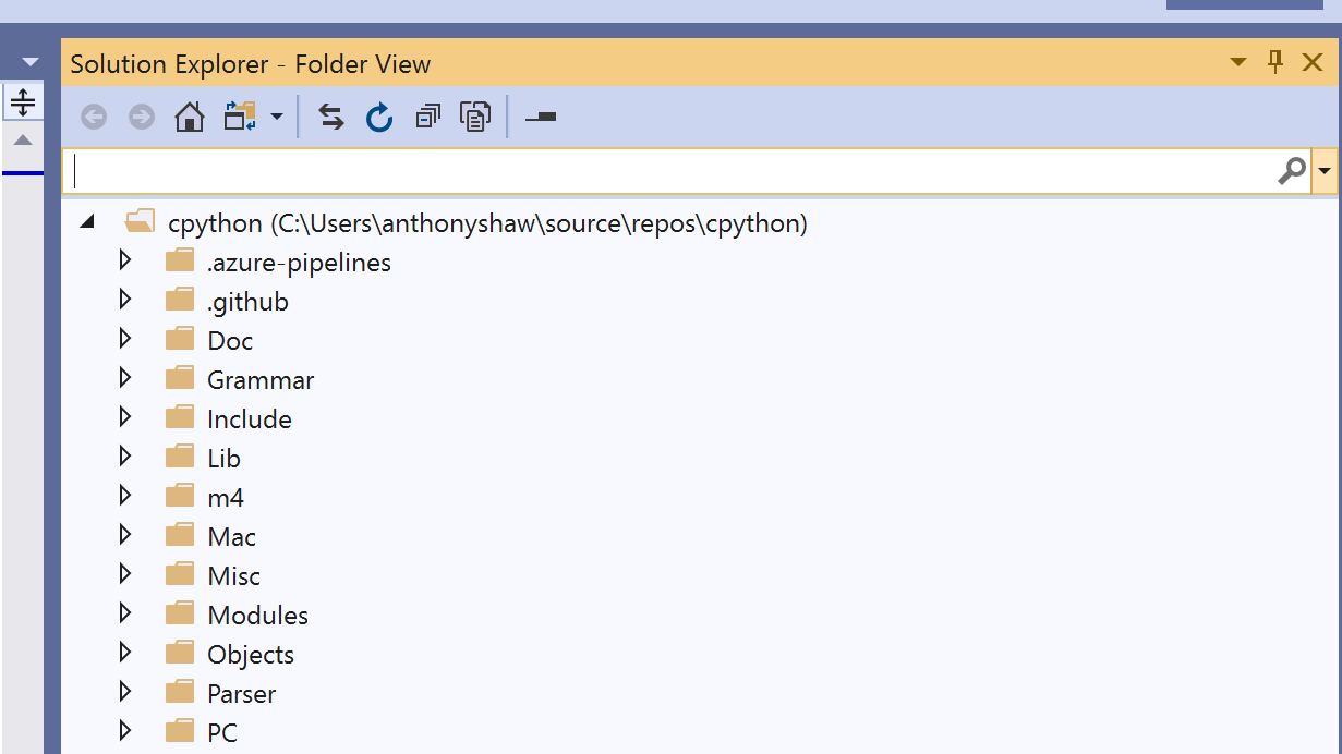 Inside of the newly downloaded cpython directory, you will find the following subdirectories: